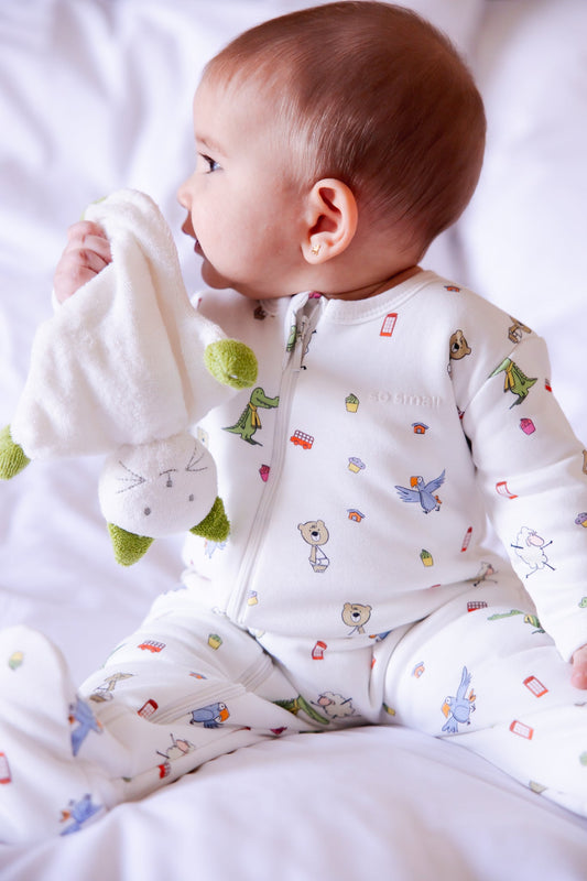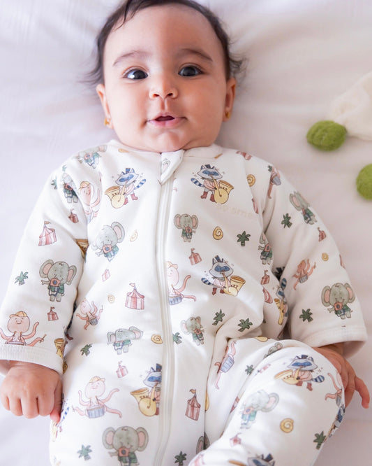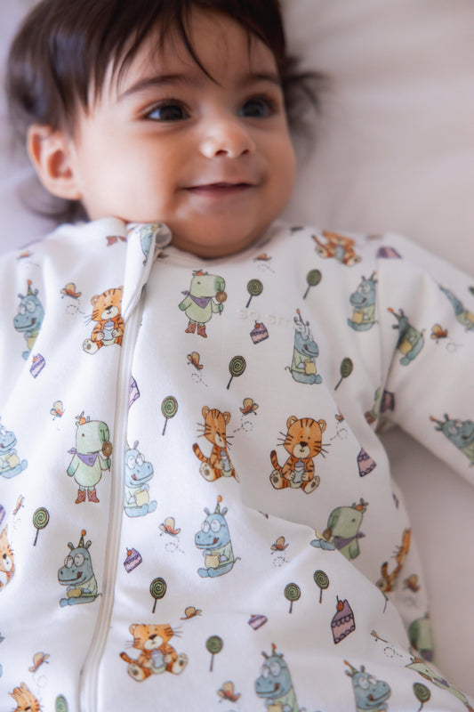 Organic Padded Winter Zipper Footie- Playdates & Cupcakes
