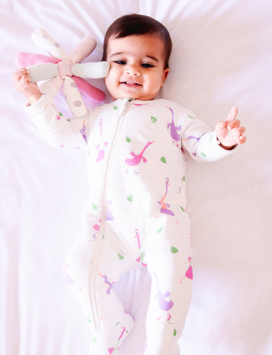 Organic Zipper Footie- Welcome Little One in Bon Bon