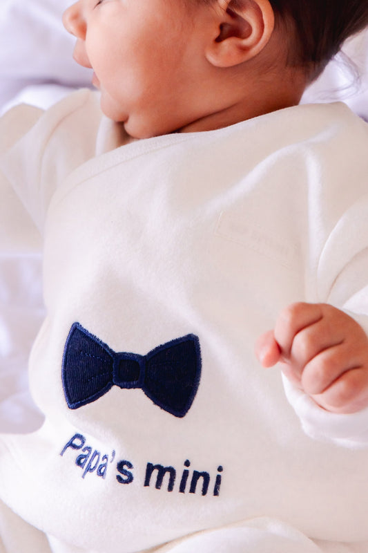 Organic Two-Piece Set (Magnetic Blue Bodysuit+ Capitaine Comme Papa White Muslin Jumpsuit)